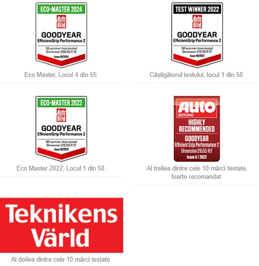 EfficientGrip Performance 2 este câștigătorul testului de vară Auto Bild 2022 cu cel mai mare kilometraj pentru o anvelopă de vară în comparație cu orice alte mărci de anvelope testate. Performanța remarcabilă în kilometraj provine de la tehnologia Mileage Plus, care asigură o elasticitate ridicată a benzii de rulare, rezultând mai puține fracturi cauzate de condițiile accidentate ale drumului. Tehnologia Wet Braking Pro- și Dry Contact Plus îmbunătățesc performanța anvelopei pe teren umed și uscat datorită evacuării optime a apei și a unei rigidități crescute a benzii de rulare.
