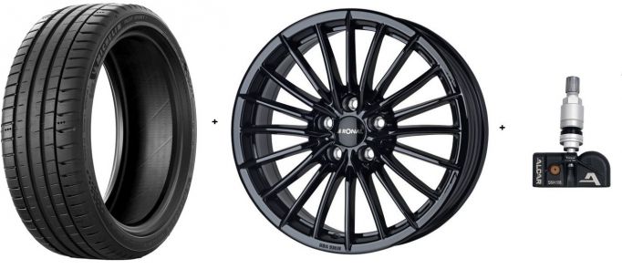 Bucură-te de un condus sportiv și control maxim cu acest set complet de roți de vară, echipat cu anvelope Michelin Pilot Sport 5 255/45 R19 104Y XL, jante Ronal R68 Jetblack și senzori de presiune Alcar speciali pentru Tesla.
